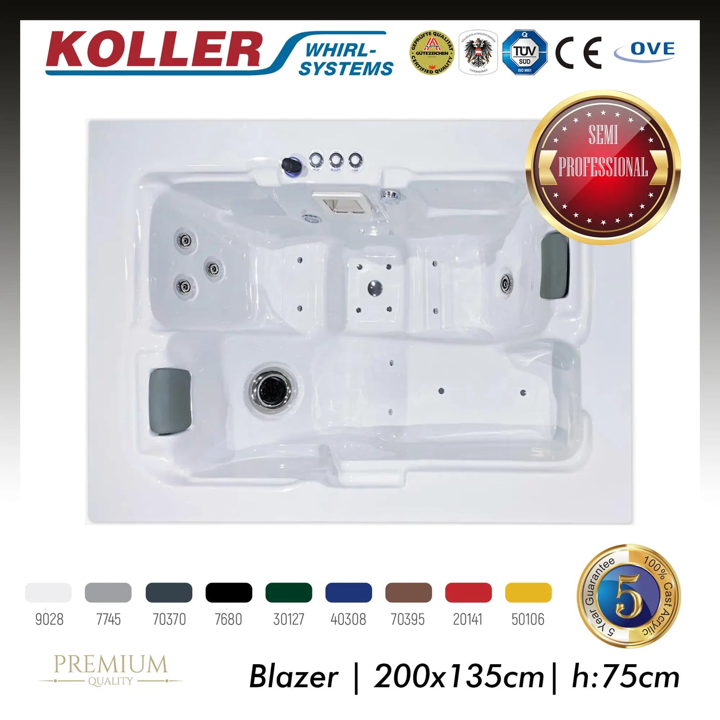 - نظام التحكم الرقمي: شاشة التحكم باللمس ، مصباح العلاج بالألوان ، مستشعر مستوى الماء