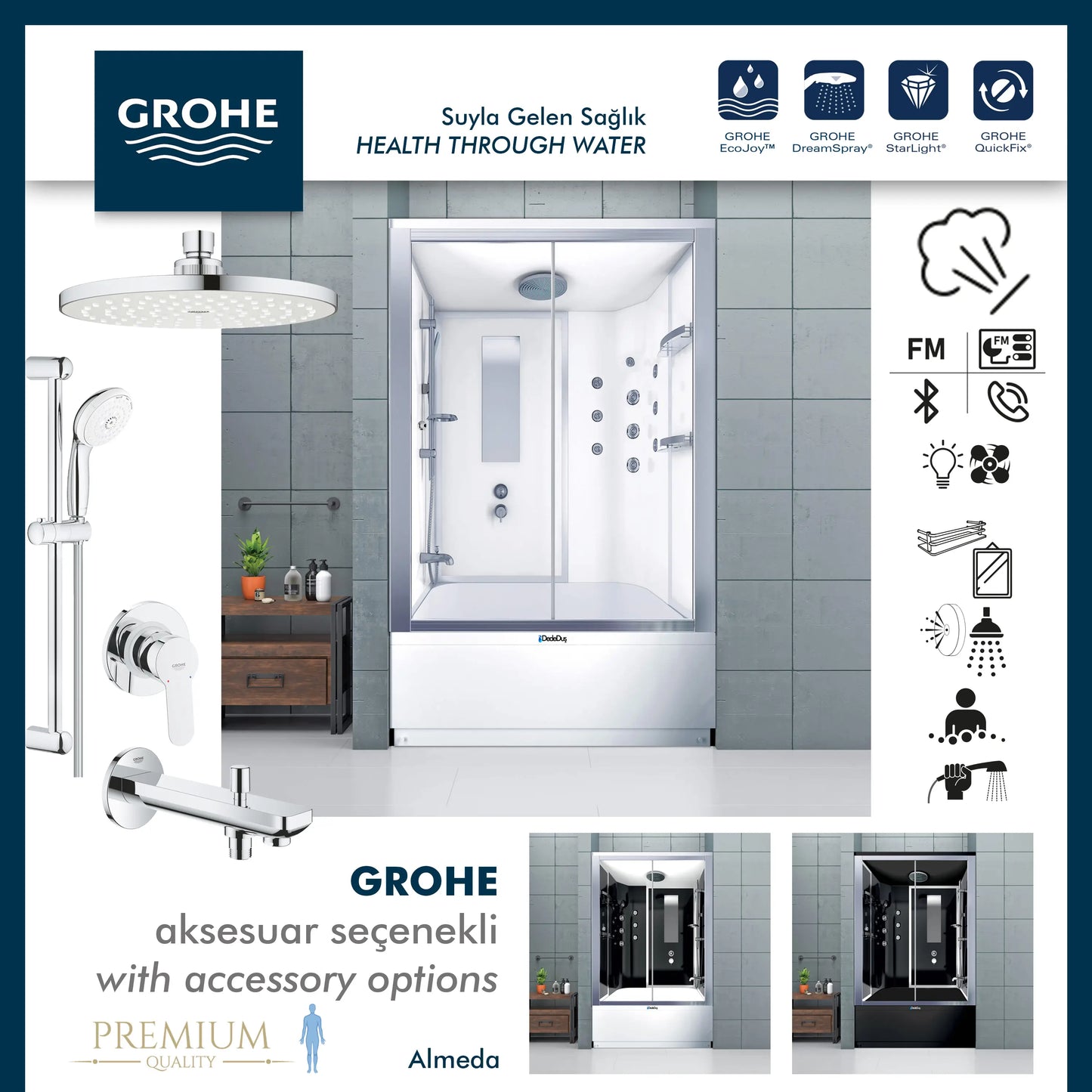"حوض صغير بالبخار | مع جاكوزي | مقصورة دش مدمجة للتدليك | وضع"' ürününde "GROHE Ürün Yükseltmesi" Seçeneğini Kullanabilirsiniz!