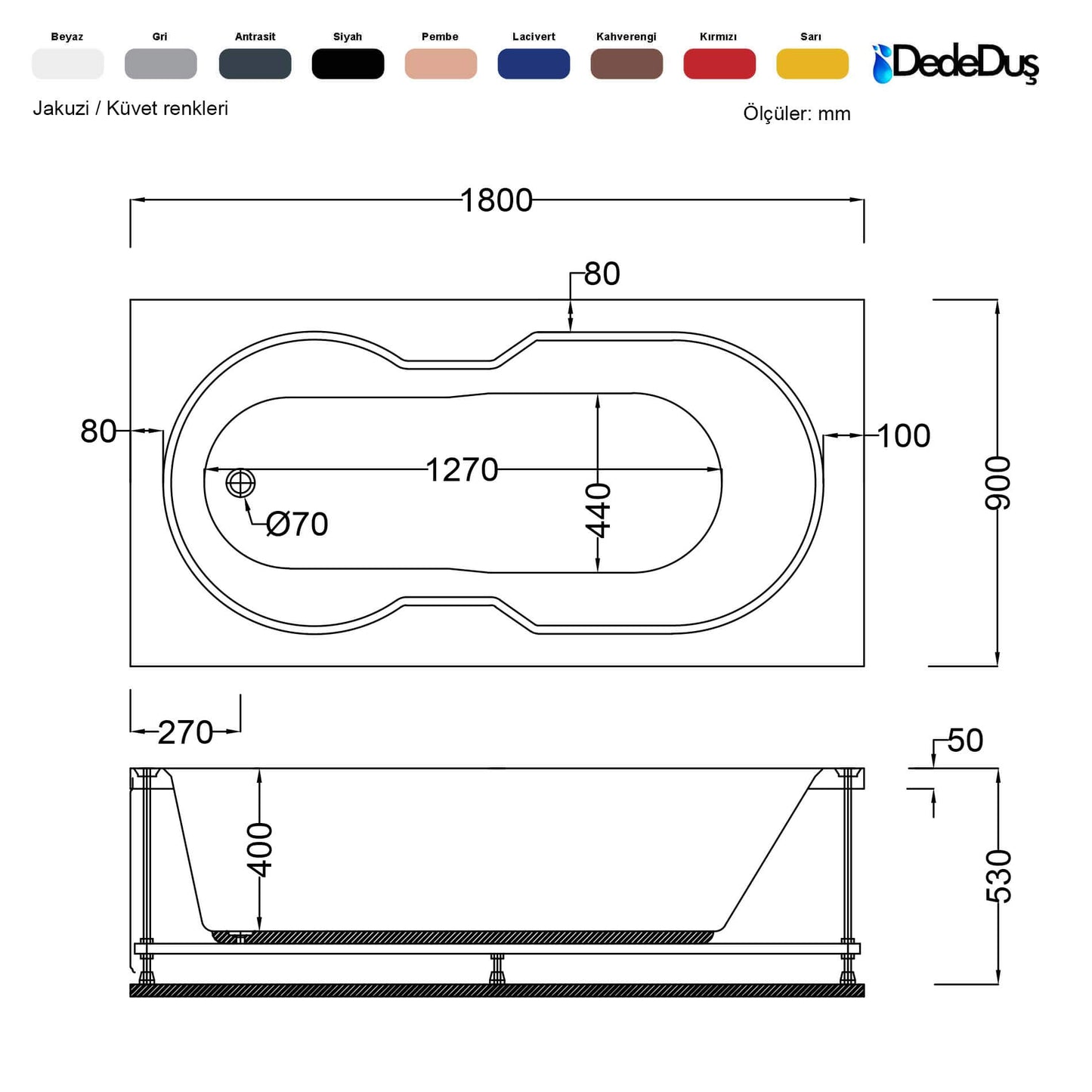 * Hidromasaj sistemi (jakuzi) olmadan, boş küvet talepleriniz için lütfen iletişime geçiniz!
