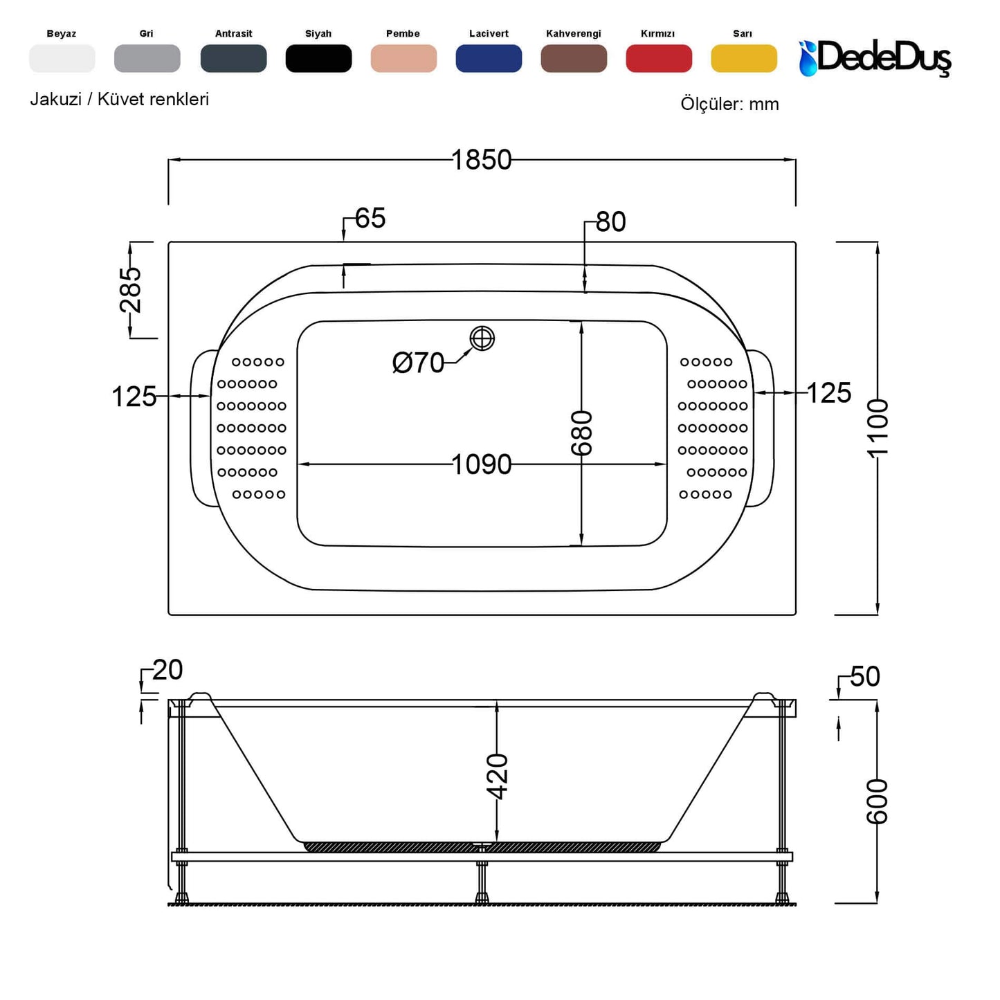 * Hidromasaj sistemi (jakuzi) olmadan, boş küvet talepleriniz için lütfen iletişime geçiniz!