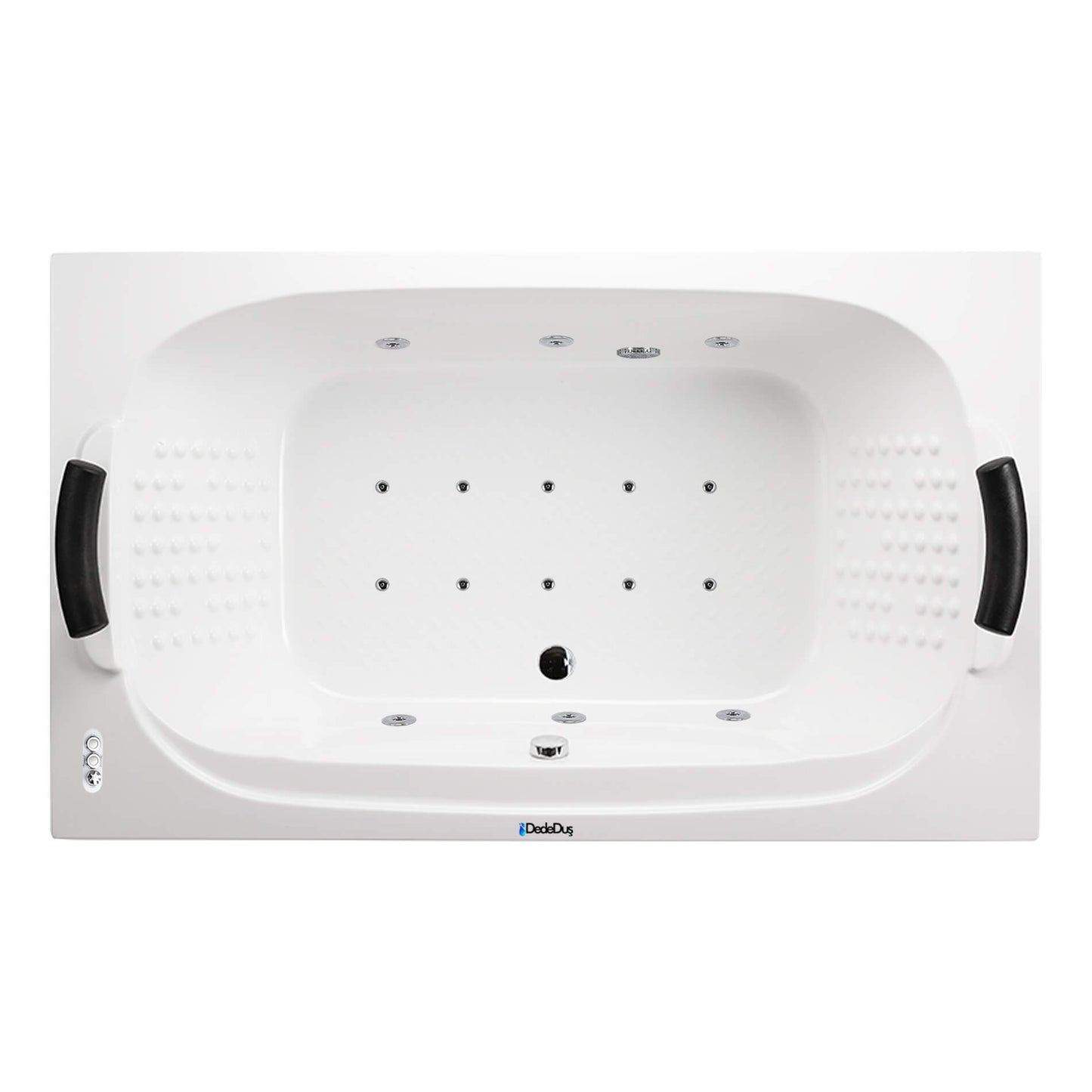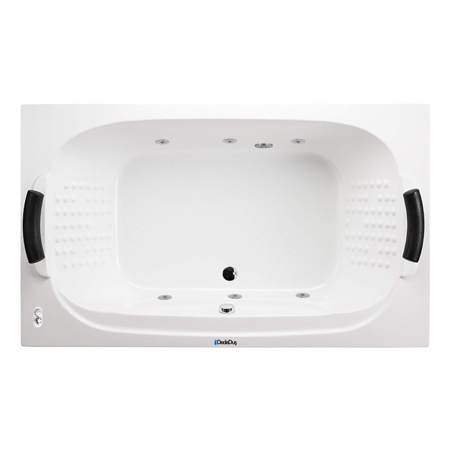 Kendinden renkli %100 Dökme Akrilik jakuzi küveti, Metal konstrüksiyon güçlendirme, Emiş süzgeci, Basınç ayar butonu, Kumandalı Sifon + System 1 Hidro Masaj Sistemi