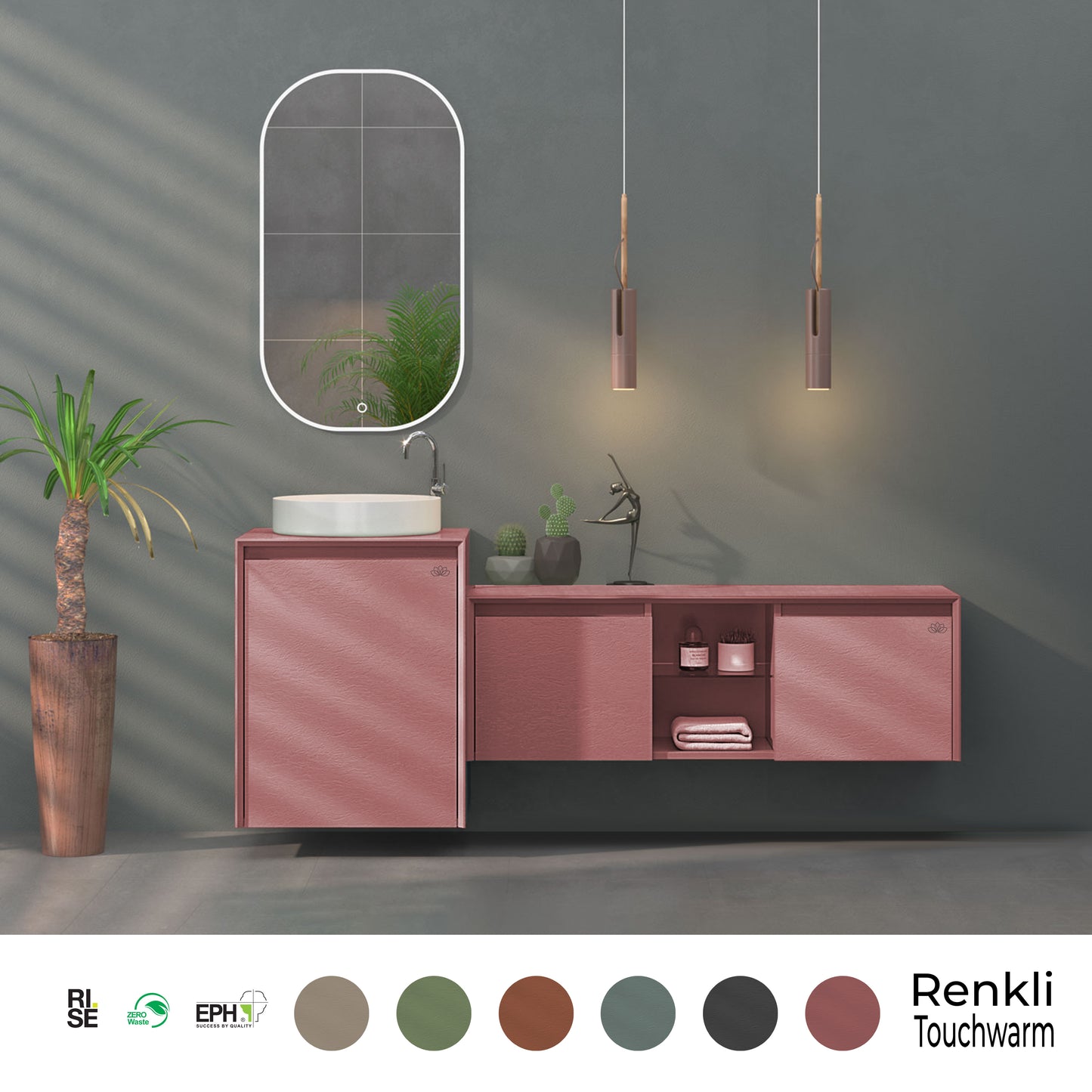 Stone Art Banyo Mobilyası 175 ile banyonuzda şıklığı ve konforu bir arada yaşayın. 55 cm’lik kompakt alt modülü, 51 cm’lik üst modülü ve 120 cm’lik yan modül dolabı ile küçük banyolarda bile geniş depolama alanı sunar. Renkli Touchwarm gövde, dokunmatik LED’li ayna ve yavaş kapanır kapaklar gibi özellikleriyle banyonuza modern bir dokunuş katarken, kullanım kolaylığı sağlar.