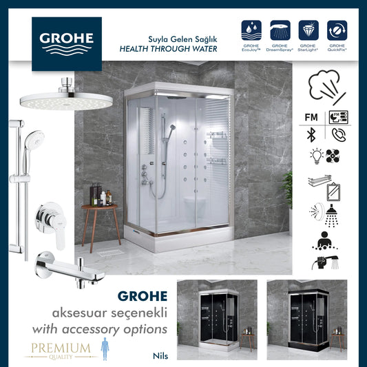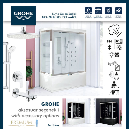 Duvardan Duvara Küvetli Buharlı | Jakuzili | Masajlı Compact Duşakabin | Mod
