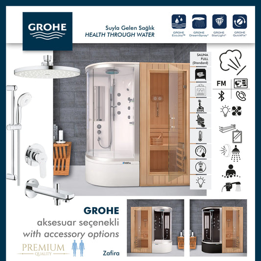 Oval Oturmalı Küvetli Buharlı | Jakuzili | Masajlı Compact Duşakabin | Mod