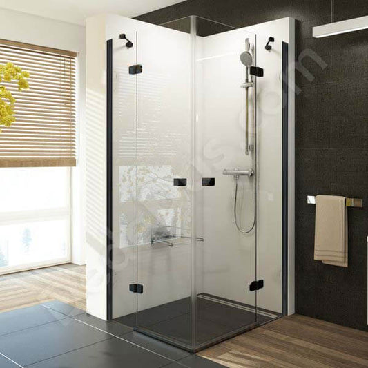 Duvar Arası 2 Sabit, 2 Açılır Pirinç Menteşeli Siyah Duşakabin