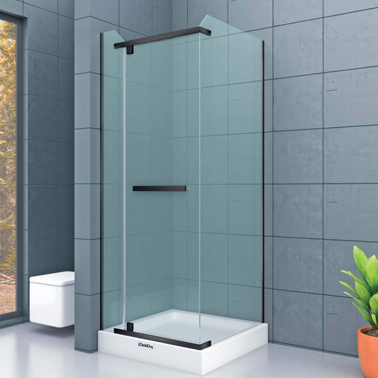 Duvar Arası Tek Kapı Pirinç Menteşeli Siyah Duşakabin