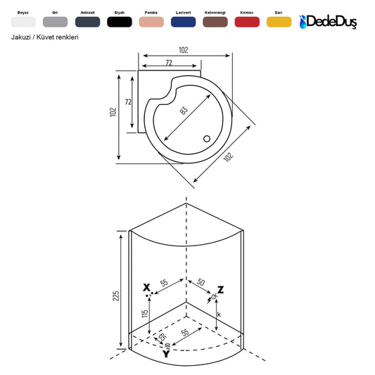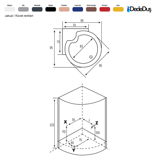 Yuvarlak Kompakt Duşakabin | 95x95 cm | Sanacryl