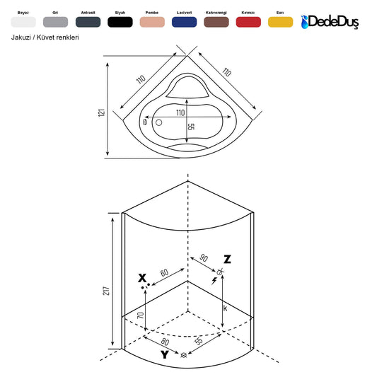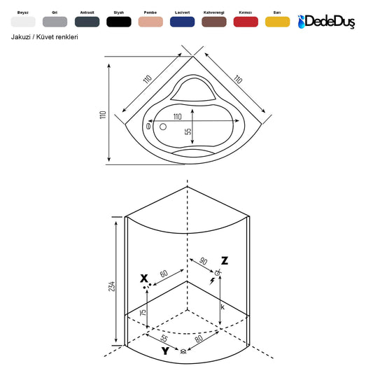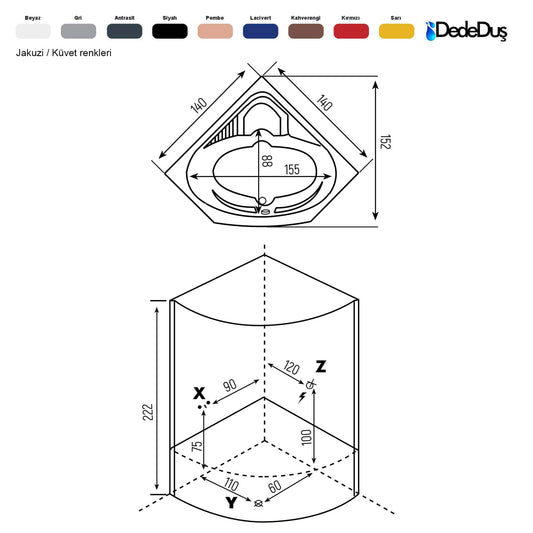 Çift Kişilik Jakuzi | 180x150 cm | Sanacryl
