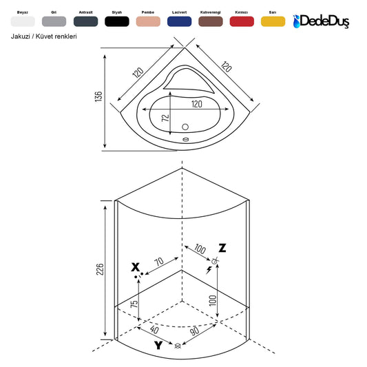 Çift Kişilik Bağımsız Renkli Küvet | Jakuzi | 180x180 | Sanacryl