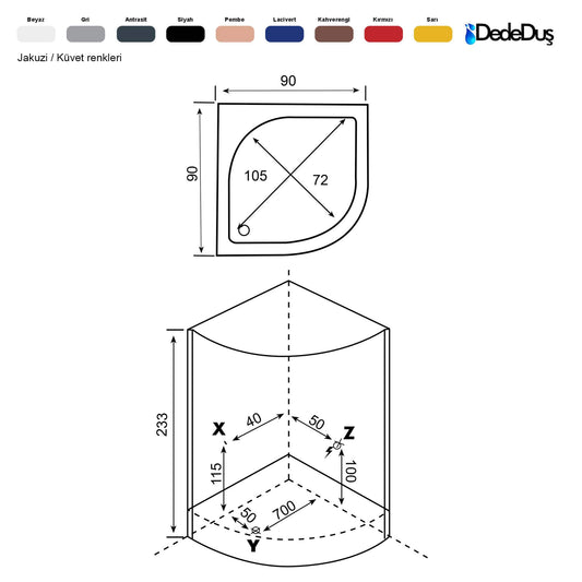 Zemin, duş teknesi veya küvet üzeri, isterseniz duvar köşesine isterseniz düz olarak kullanabileceğiniz "%100 Dökme Akrilik" Sanacryl dikey duş sistemleri.