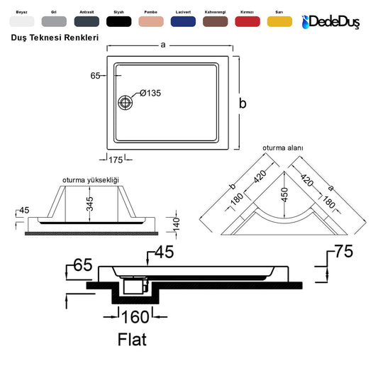 Dikdörtgen Flat Oturmalı Duş Teknesi | Sanacryl