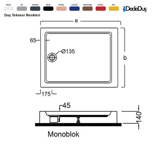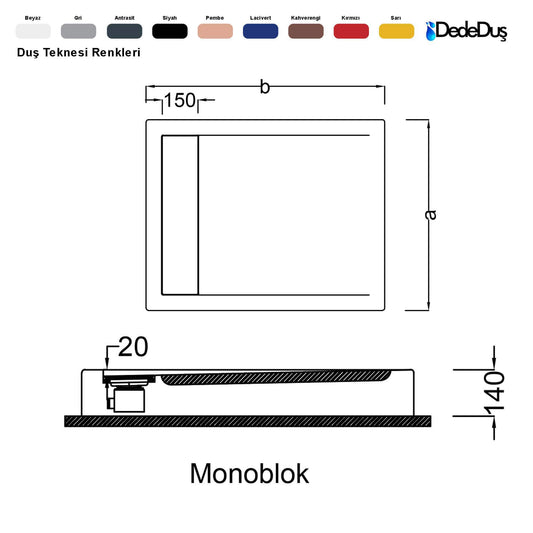 Dikdörtgen Monoblok Duş Teknesi | Sanacryl+