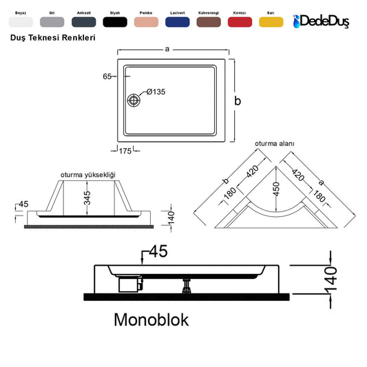 Dikdörtgen Monoblok Oturmalı Duş Teknesi | Sanacryl