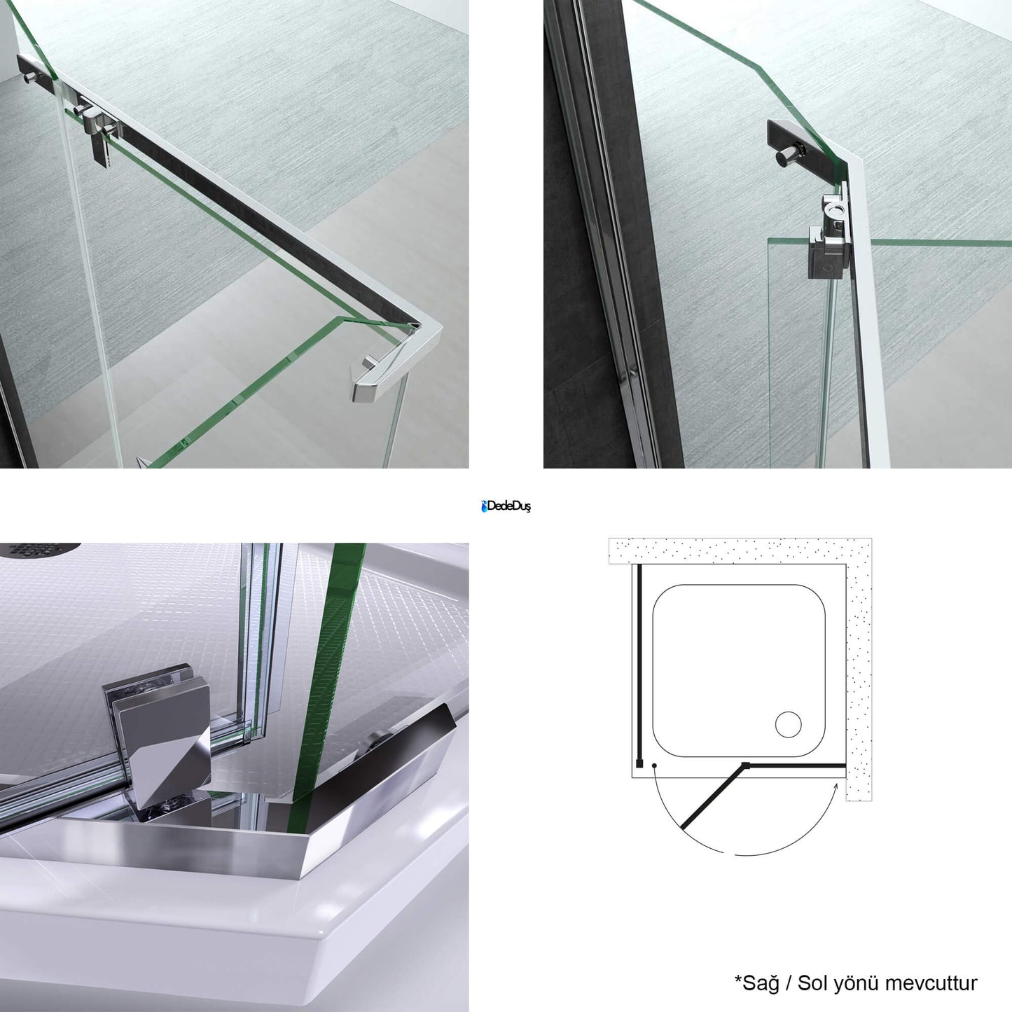 Wenn man die Größe der Duschkabine zwischen den Wänden nimmt; Es werden 3 Messungen vom unteren, mittleren und oberen Teil vorgenommen, die wir 3-Punkt-Messung nennen, und das niedrigste Maß ist das Maß Ihrer Duschkabine.