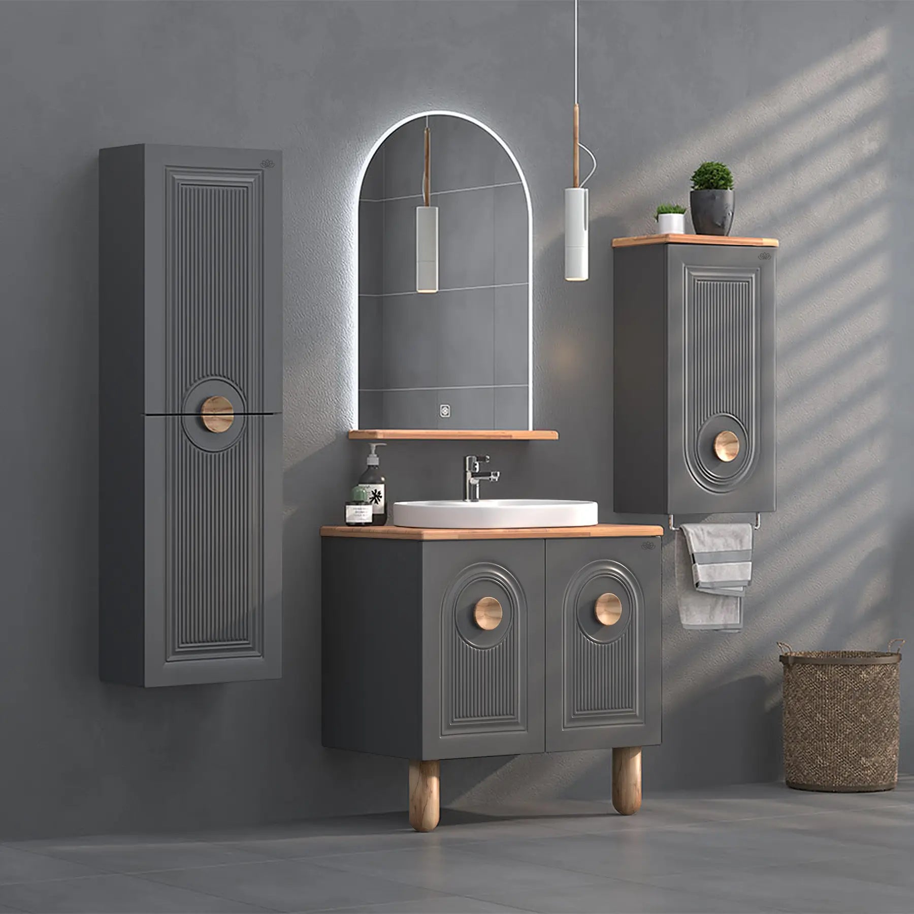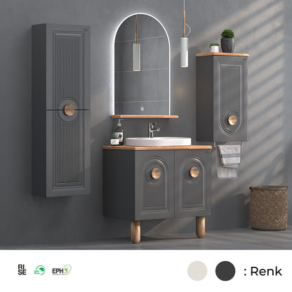 Küçük Banyolara Büyük Çözüm: Arte 80 cm Ayaklı Ahşap Detaylı Banyo Takımı