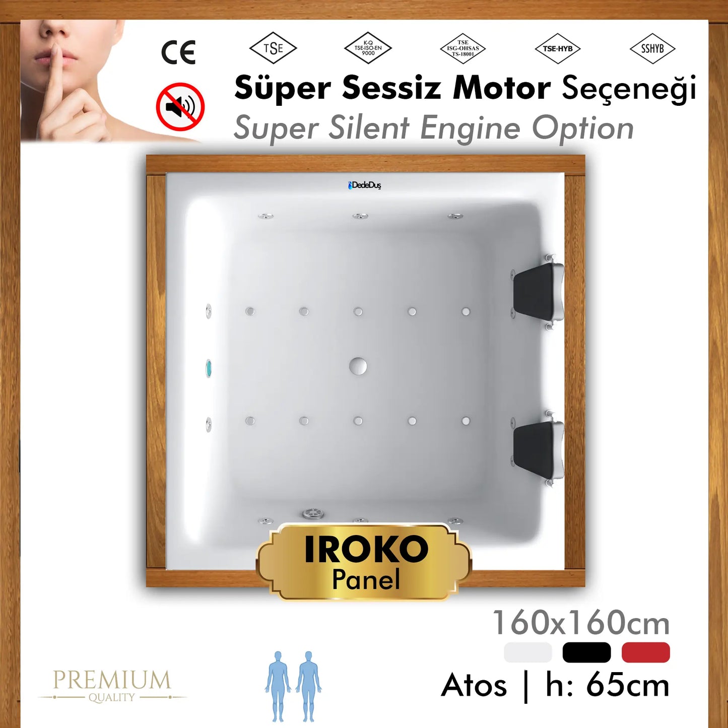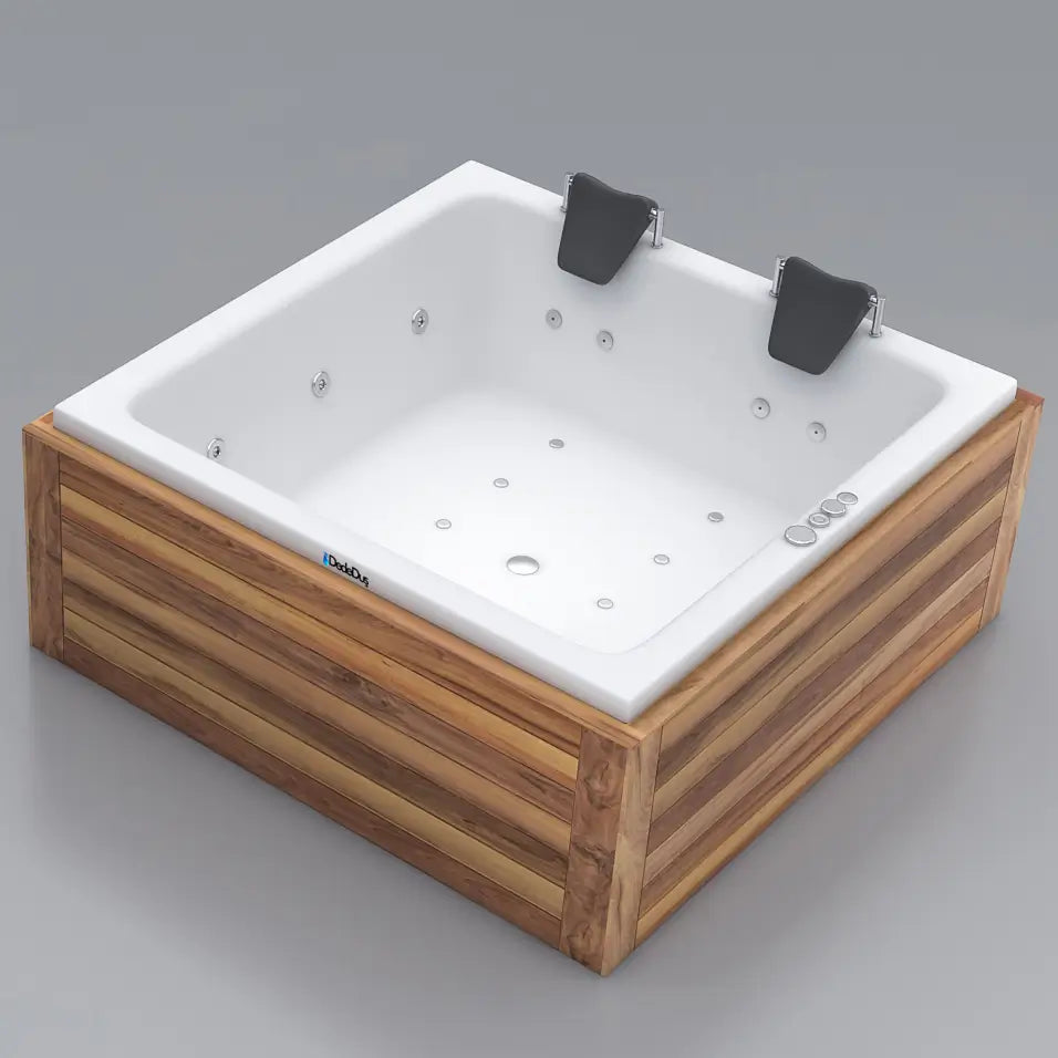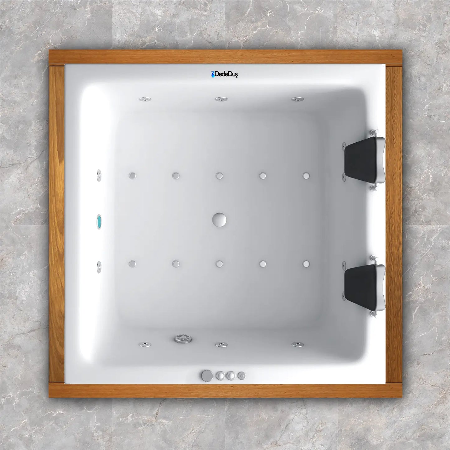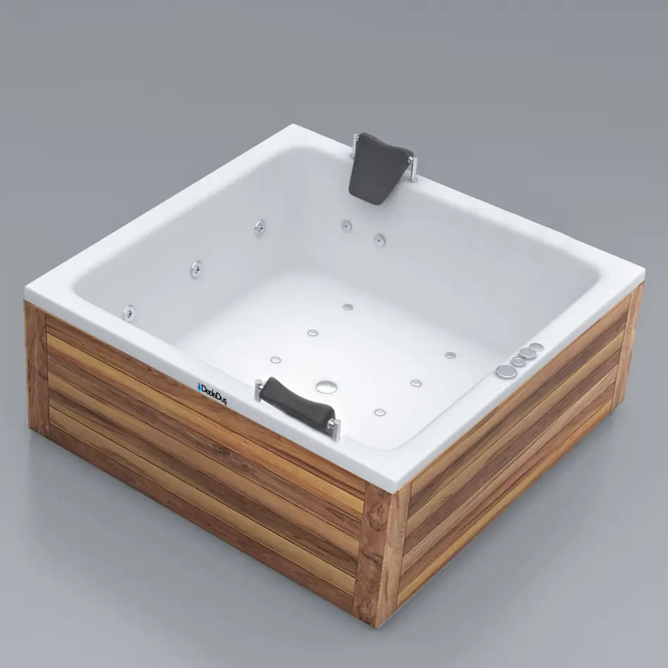İdeal yüksekliği, iroko ağacının sıcaklığı ve kare yapısı ile Atos Plus çift kişilik jakuzinizi oluşturmaya başlayabilirsiniz.