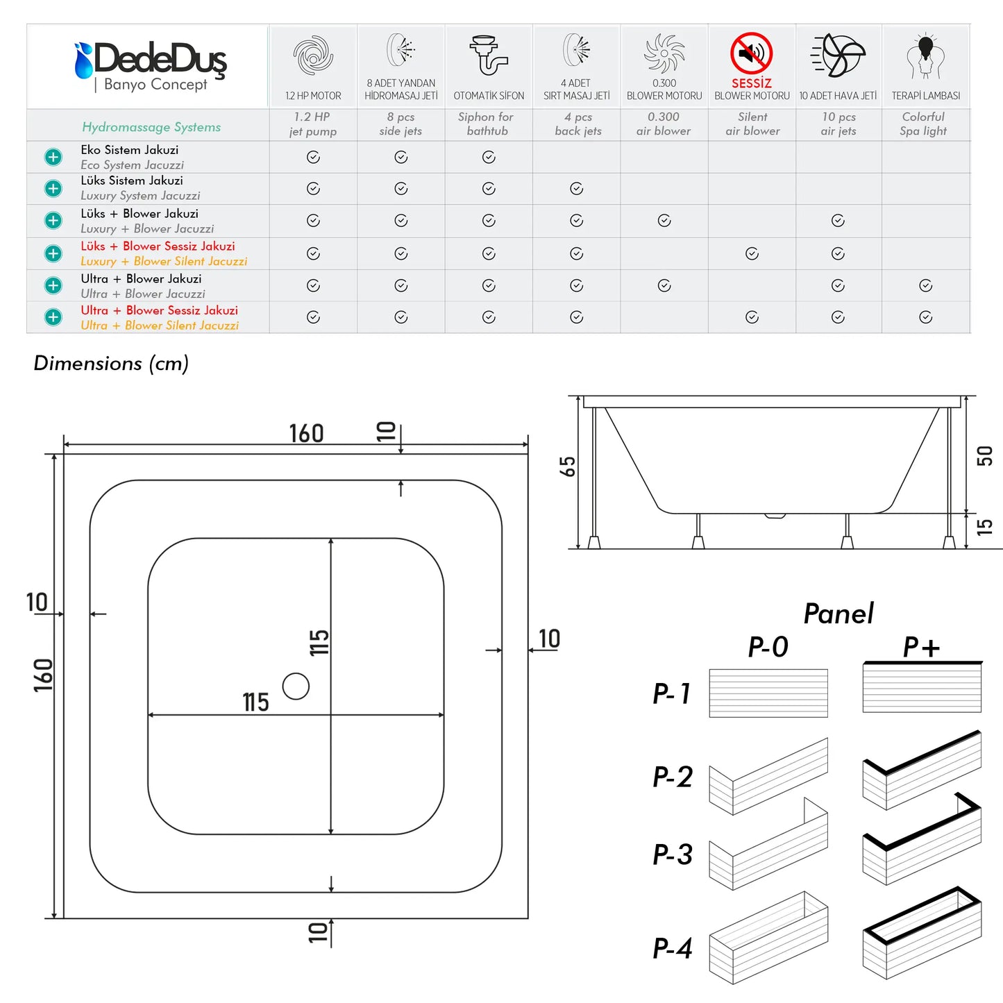 * Jet sayılarına göre, yan jet ve blower motorları bu sistemleri en yüksek performansta çalıştıracak şekilde, ürün mühendislerimiz tarafından güçleri ayarlanmaktadır.