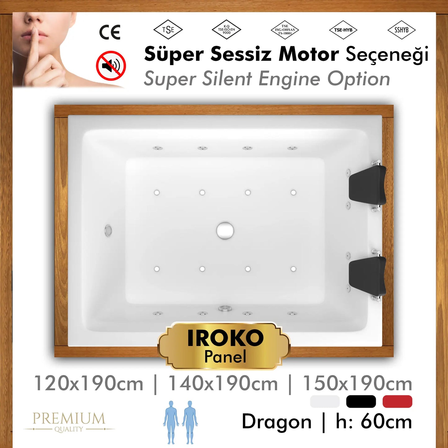 Fakat sizin için geliştirdiğimiz "Süper Sessiz Motor" seçeneğimiz ile jakuzi performansını düşürmeden jakuzi keyfinizi çok çoook sessiz yaşatıyoruz!