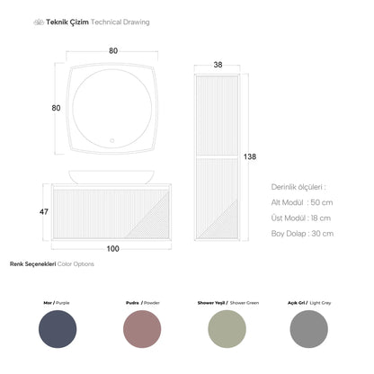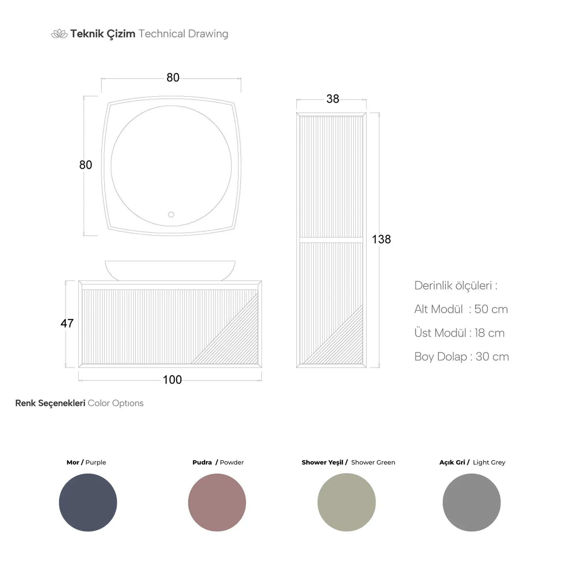 Este banyo mobilyası ile banyonuzu hem şık hem de kullanışlı hale getirin. Yavaş kapanır çekmeceler sayesinde sessiz ve rahat bir kullanım deneyimi yaşayacaksınız. Dokunmatik ledli ayna ise banyonuza modern bir dokunuş katacak. Mat Lake renginin sakinleştirici etkisiyle banyonuzda huzurlu anlar geçirebilirsiniz.