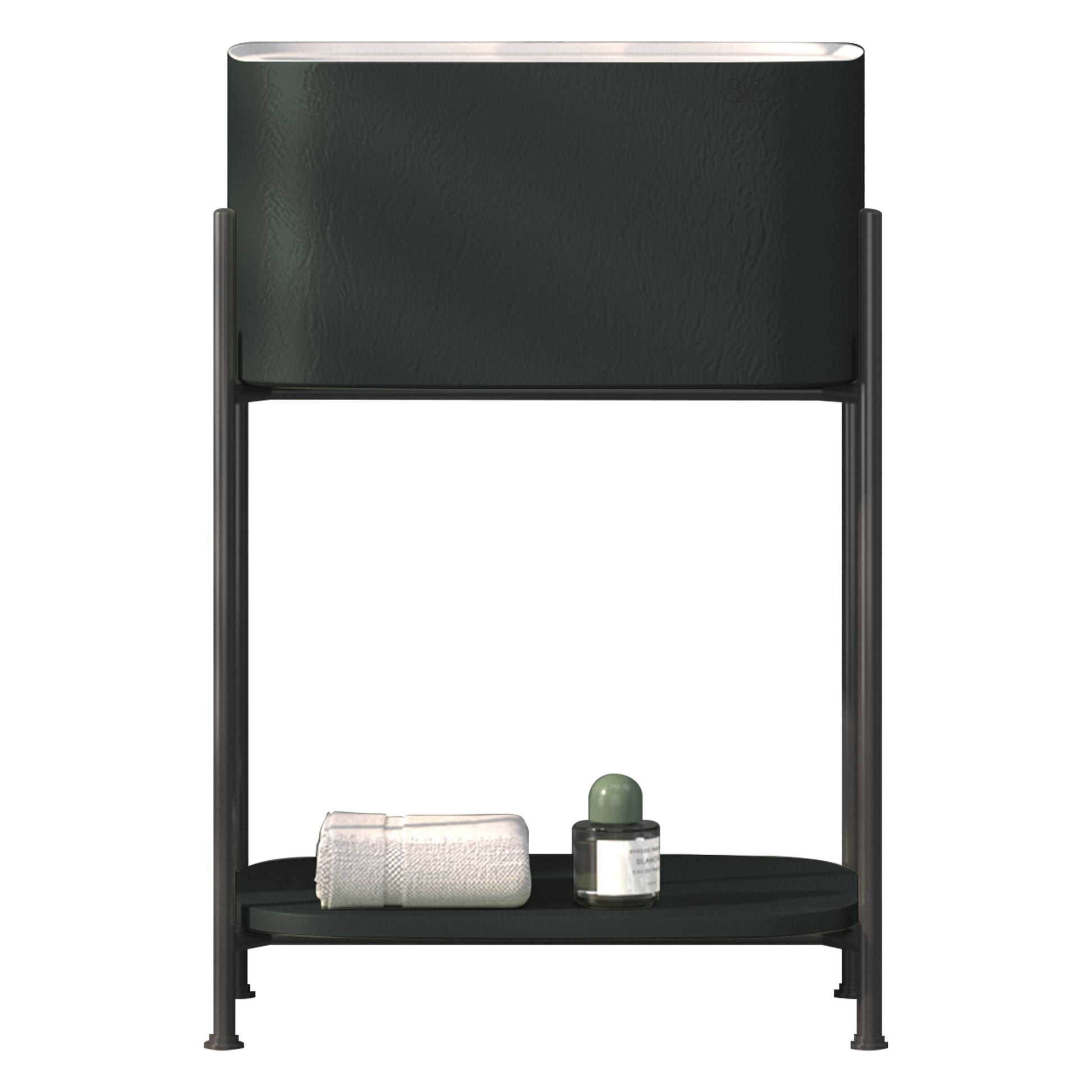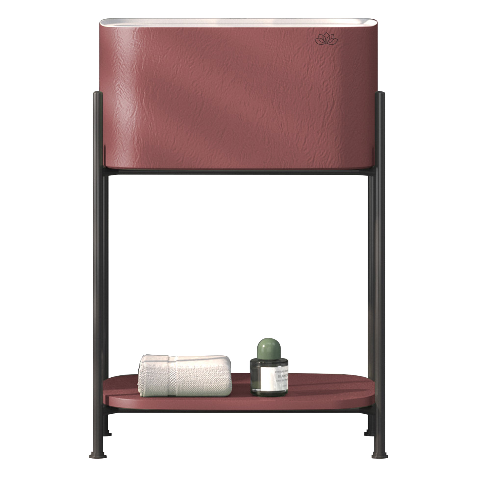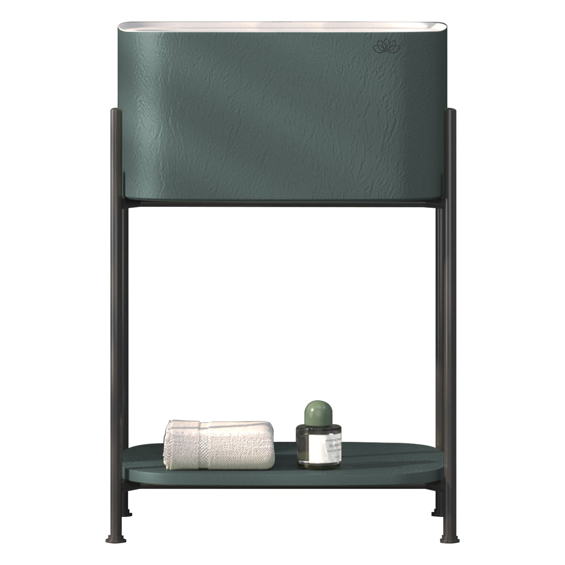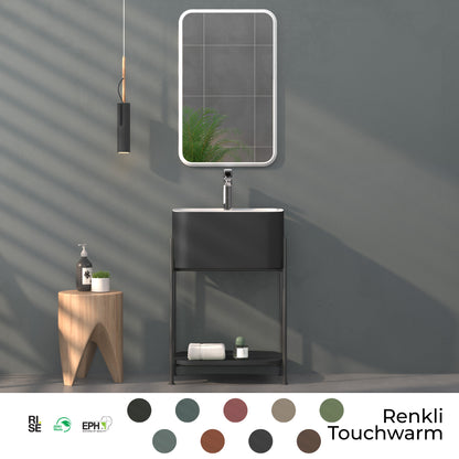 Shower İron 55 cm raflı banyo mobilyası ile banyonuza modern ve minimalist bir dokunuş katın. Metal gövdesi ve renkli Touchwarm lavabosuyla dikkat çeken bu şık tasarım, açık raf sistemi sayesinde banyo malzemelerinize kolay erişim ve düzenli bir görünüm sunar.