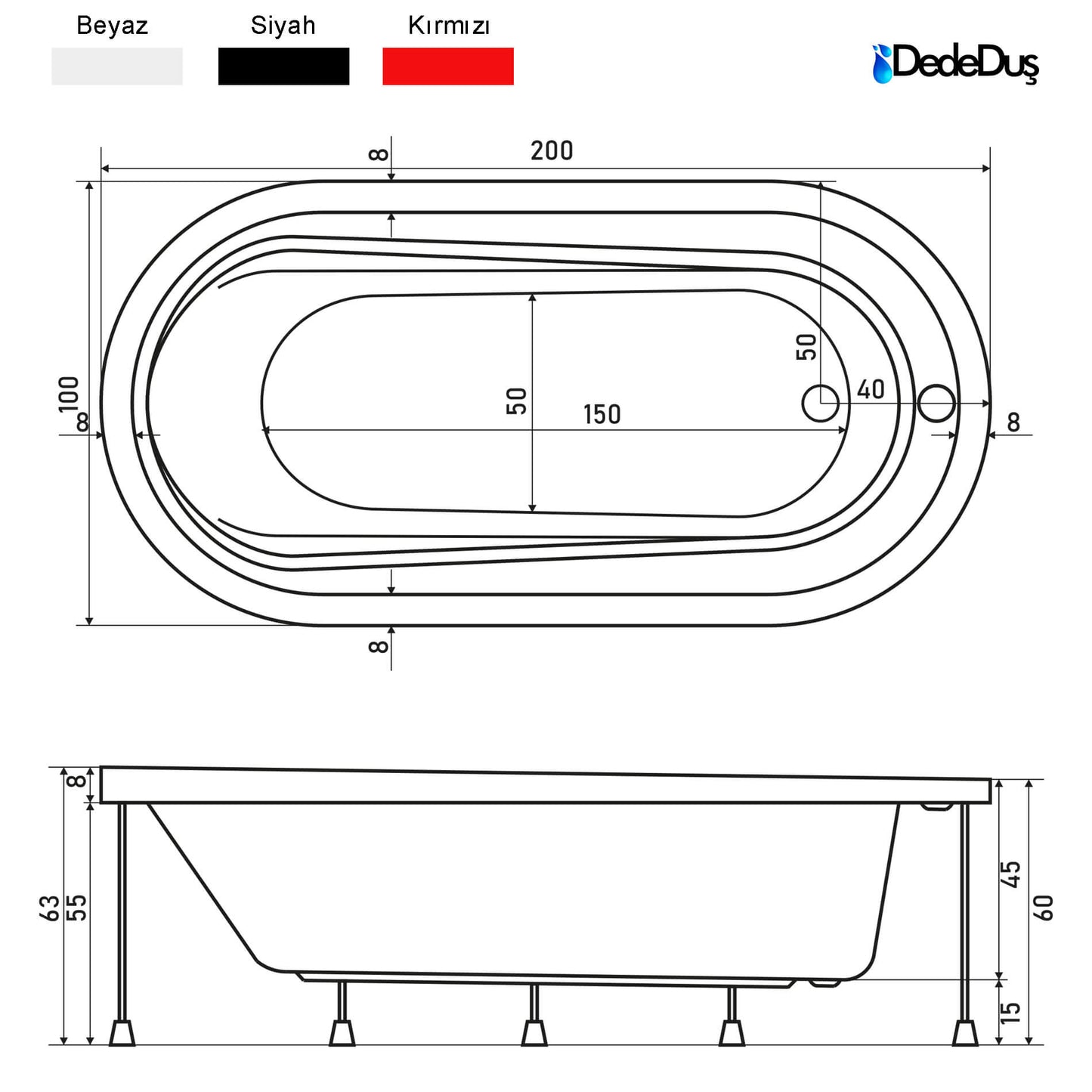 Elips Taşmalı Küvet | Jakuzi | Poyrazköy | 200x100 | Mod
